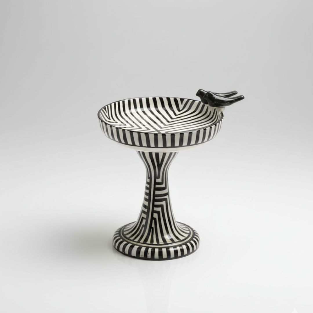 The Aks-o-Noor collection embodies timeless elegance. Each ceramic piece is meticulously hand-painted in a striking palette of monochromatic black and white, showcasing intricate geometric patterns, bold stripes, and sophisticated motifs. These pieces serve as a crisp, contemporary accent for any space, bringing handcrafted artistry and dramatic contrast to your home decor.