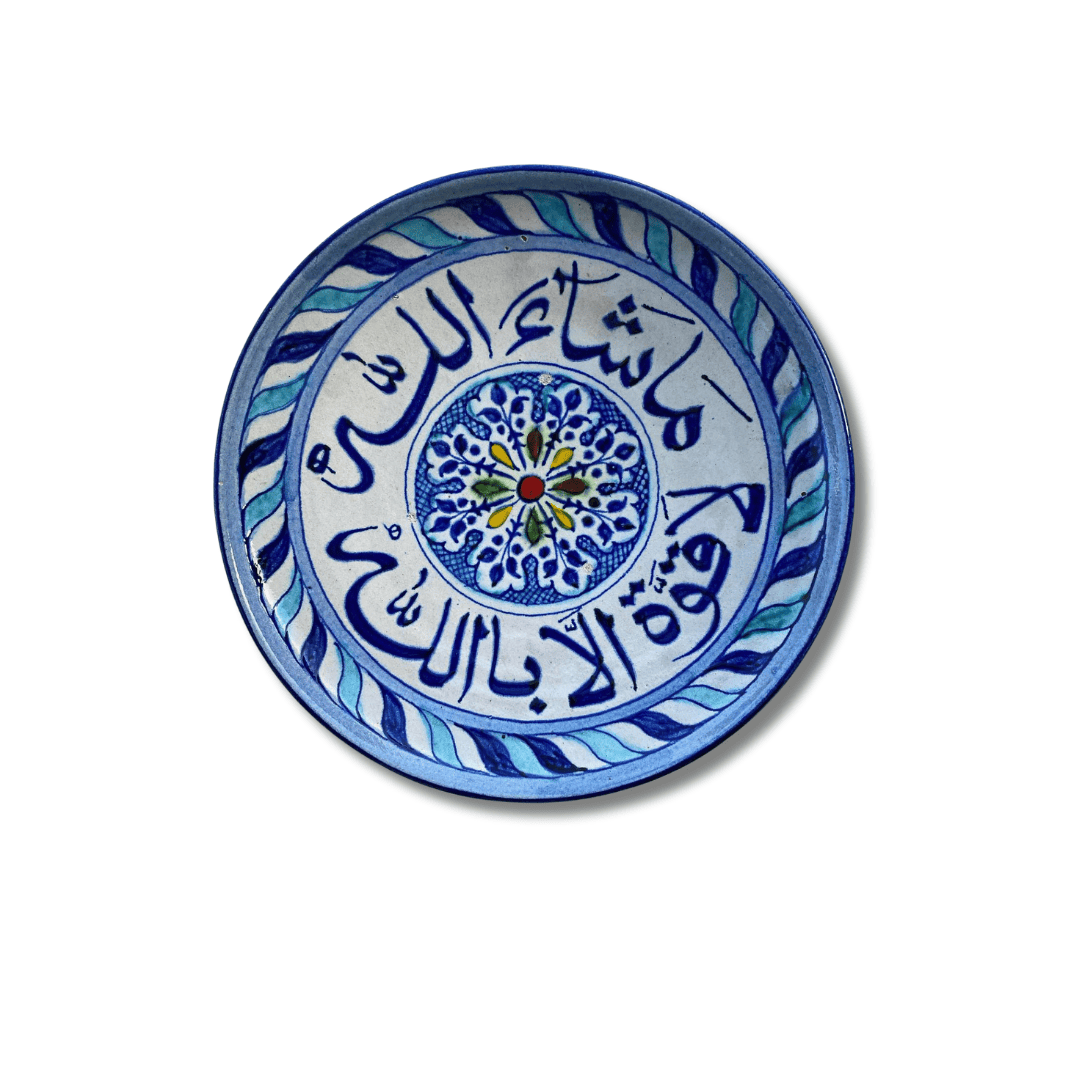 Adorn your space with this handcrafted decorative plate featuring the phrase “Ma Sha Allah La Quwwata Illa Billah” — “What Allah wills; there is no power except with Allah.”