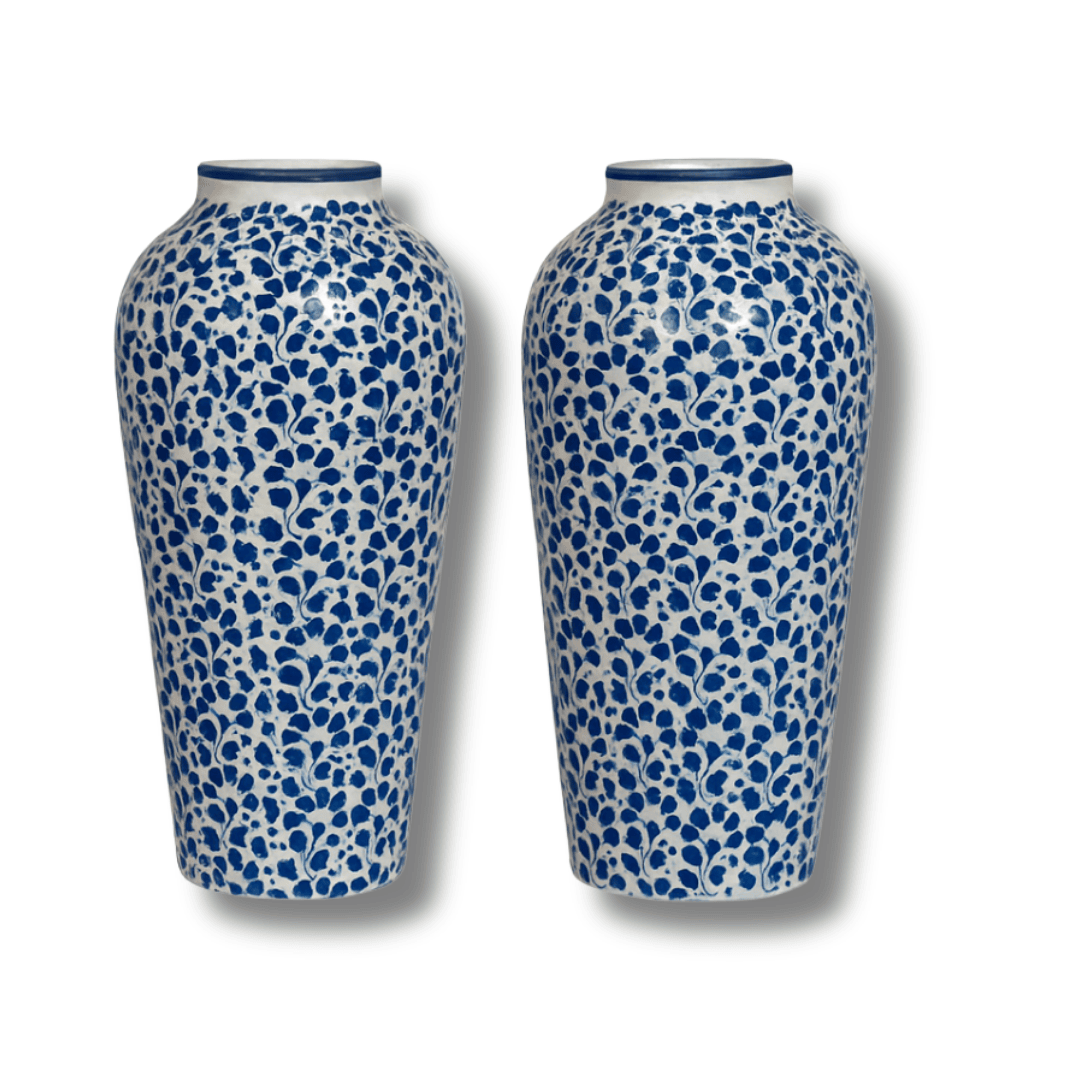 Experience the vibrant artistry of Sindh with our Rang Mahal Guldaan. These unique vases captivate with their elegant ruffled tops and a joyful array of hand-painted, multicolored floral patterns on a classic blue and white base. Each one is a delightful centerpiece, bringing a palace of colors to your home decor.